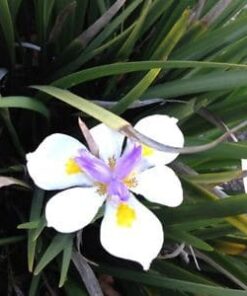 A drought tolerant plant with purple centered white iris flower. This is a popular, easy-to-grow garden plant which will grow under most conditions.